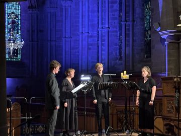 The Hepburn Four. Early music to Scottish folk. This group is destined for great things. After a recent performance the Scotsman newspaper gave them a 5* review; "… delivered with a fluid gracefulness and remarkable sense of balance and ensemble that made for exquisite sonic beauty". The group received a standing ovation.