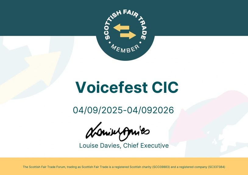Voice Festival Brechin & Voicefest are trading names of Voicefest CIC. Registered in Scotland. Registered Address: 272 Bath Street , Glasgow G2 4JR